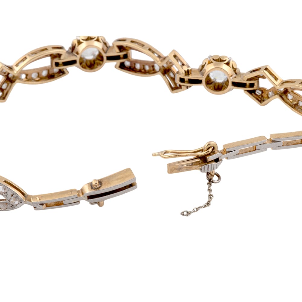 Pulsera estilo ARTDECO de oro amarillo con vistas de oro blanco y diamantes