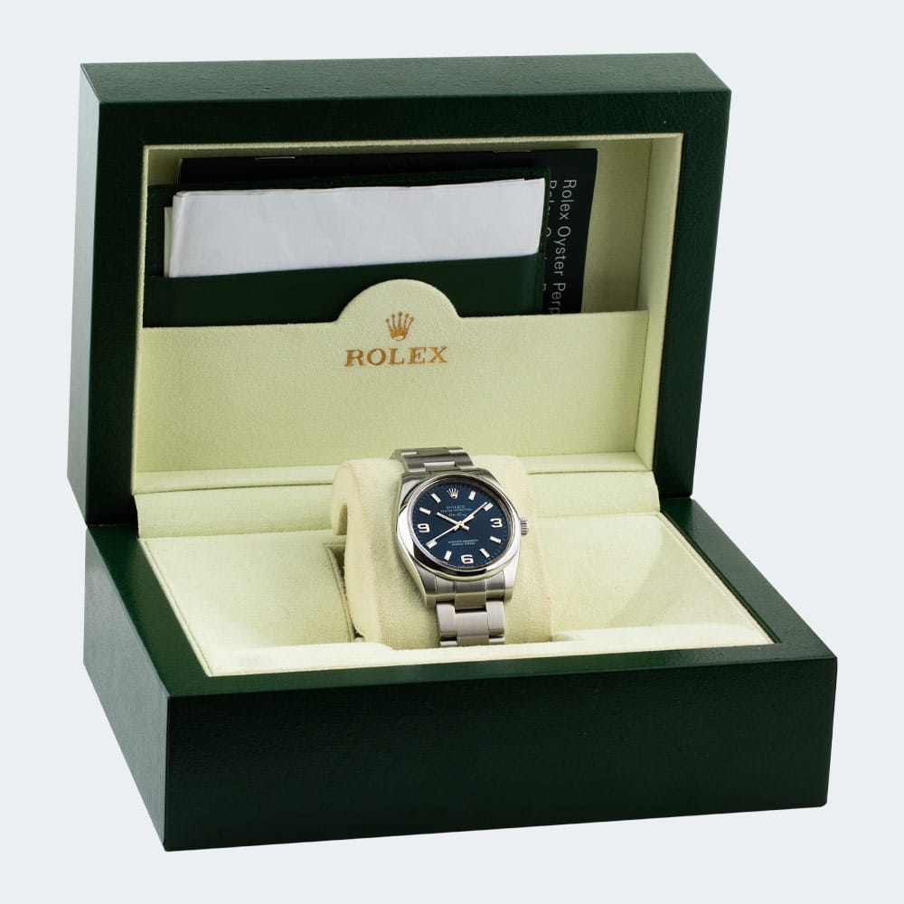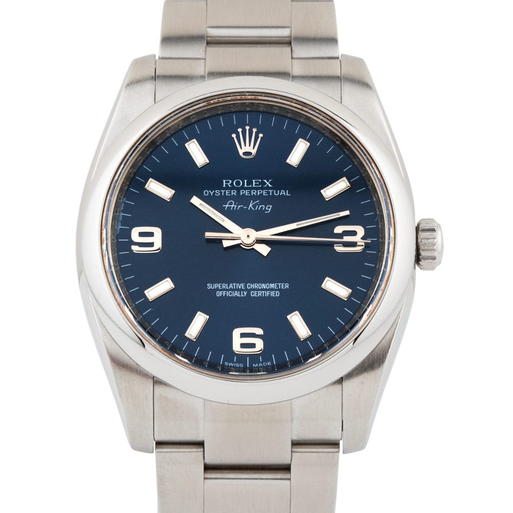 RELOJ ROLEX MODELO OYSTER AIR KING 114200 DE CABALLERO 34MM EN ACERO CON ESFERA AZUL NºSERIE G127932// AÑO FABRICACION 1965-1966// BRAZALETE LT3 2009 // CAJA ORIGINAL